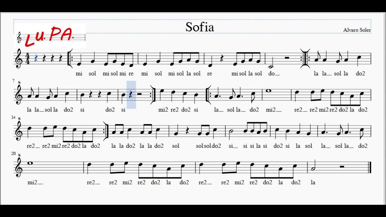 Sofia Flauto dolce Note Spartito Karaoke Canto Instrumental Musica YouTube
